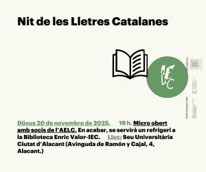 La Delegació d’Aalcant acull un any més la Nit de les Lletres Catalanes, que se celebrarà el 20 de novembre amb motiu de la commemoració de la publicació del Tirant: